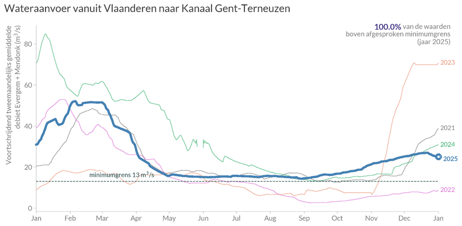 Klimaatverandering leidt tot drogere zomers en nattere winters. In de afgelopen jaren nam de wateraanvoer naar het kanaal al af. De minimale richtwaarde van zoetwateraanvoer voor het Kanaal Gent-Terneuzen is 13 m3/s gemiddeld over twee maanden. Dat werd de afgelopen jaren regelmatig niet gehaald.