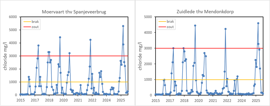 Bescherming van zijwaterlopen (Moervaart en Zuidlede) tegen verzilting met lokale ingrepen (zoals bijvoorbeeld een stuw of sluis).